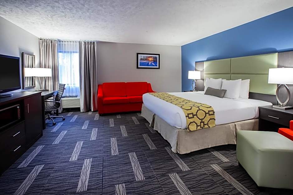 Now, let's talk about the rooms available at . Whether you're traveling alone, with a partner, or with a group, they have a room to suit your needs. Choose from a variety of room types, including the cozy King Room, the spacious King Studio Suite, the Deluxe King Room, or the comfortable Queen Room with Two Queen Beds. Each room is non-smoking and equipped with a flat-screen TV and all the amenities you need to feel right at home.